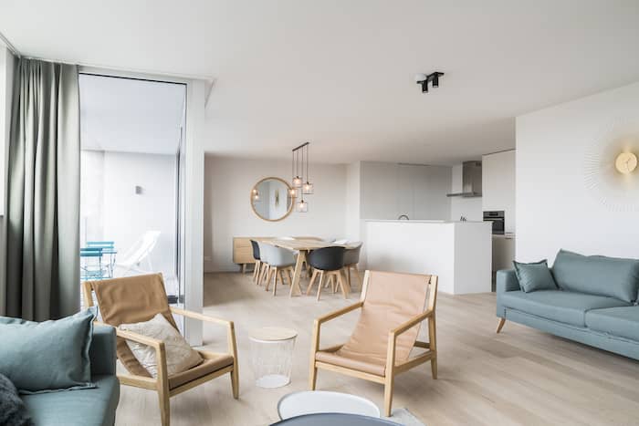 We have 8 furnished two-bedroom flats, which can fit up to 6 people. Every room is spacious and modernly decorated.